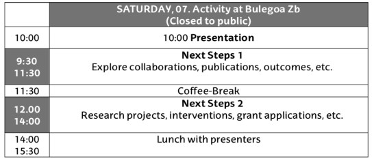 Saturday, SEP 07 (10:00 – 14:00): Activity only for speakers and participants
